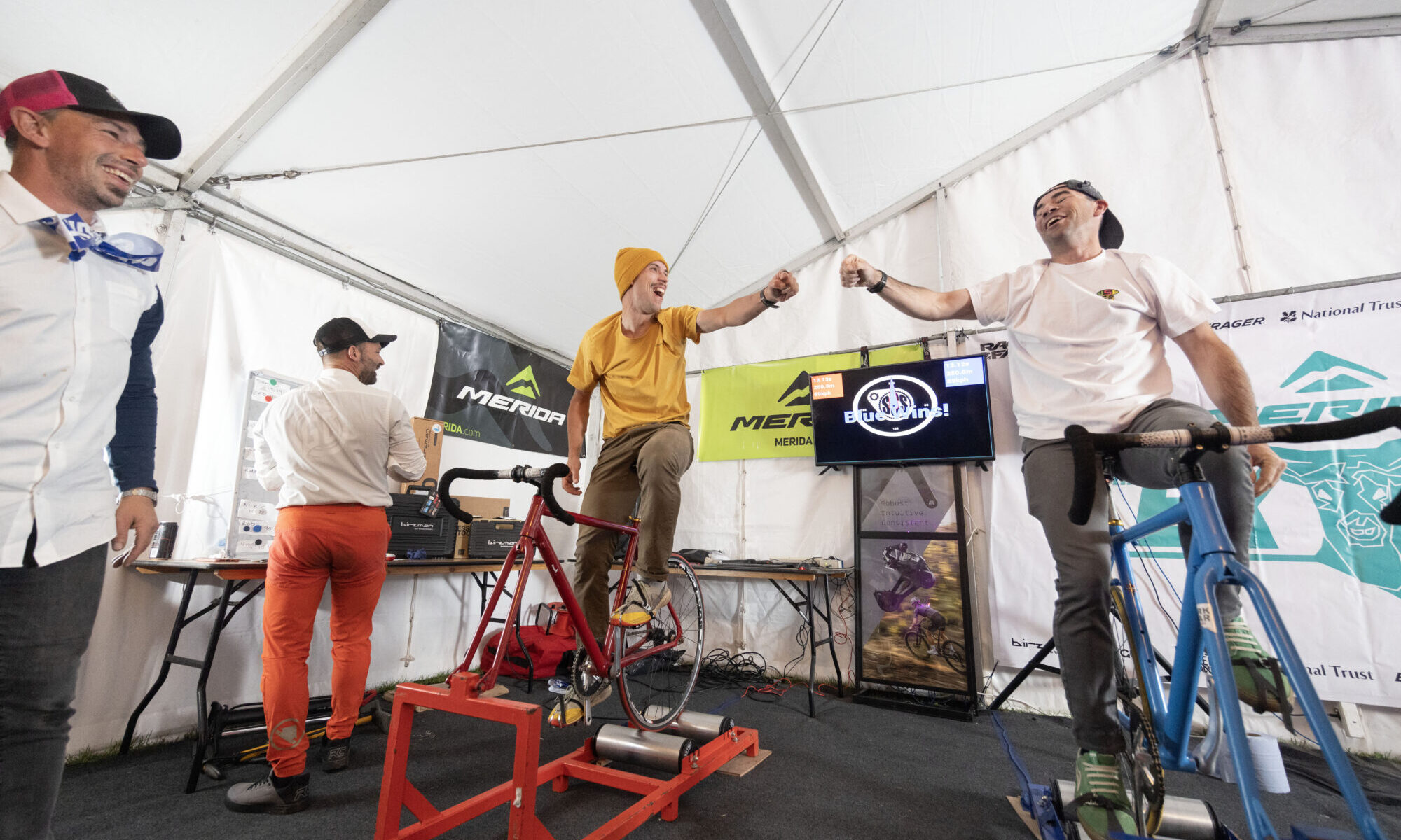 Of course, a big day on the bike deserves a big dinner. Once again, THE EX goes a step further for Saturday night, with a sit-down dinner for the racers, served by the race crew fully decked out in suits and bow ties. The table service even extended to the beers, which has the potential for a very sore head on Sunday if full party mode was engaged. A nice dinner is nothing without some entertainment, so for those with their competitive instincts still in place– or feeling a touch of beery bravado – the roller racing was once again brought out. Who knew it’s possible to hit 200rpm on a track bike after sticky toffee pudding?